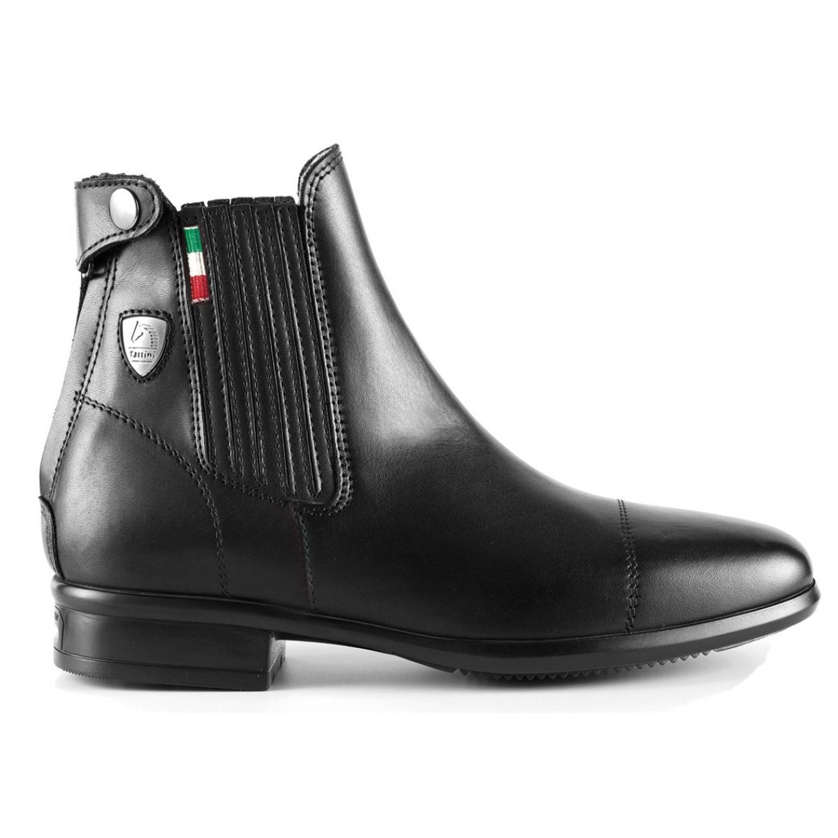 In natural calf leather with rear zipper and elasticized leather sides. Embellished with a Tattini metal badge.